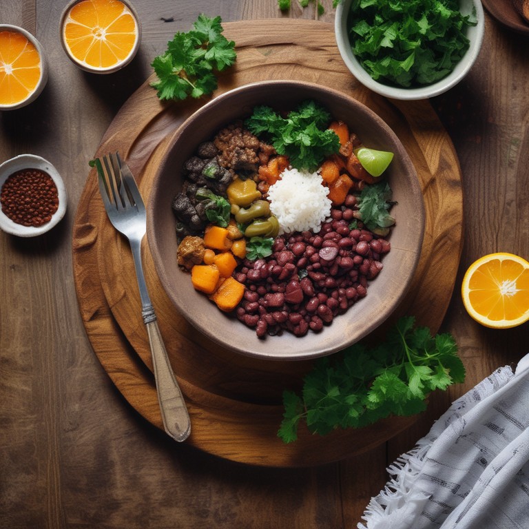 A feijoada é um prato tradicional brasileiro, feito com feijão preto e uma variedade de carnes, perfeito para um almoço em família.