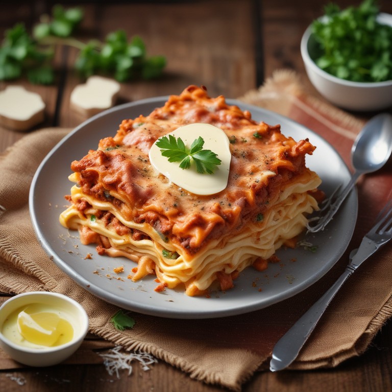 Uma deliciosa lasanha feita com carne desfiada e um molho de tomate cremoso, perfeita para um almoço em família ou um jantar especial.