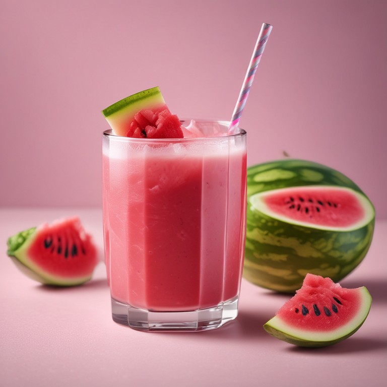 Um suco delicioso e refrescante de melancia, perfeito para os dias quentes, com um toque cremoso do leite em pó.