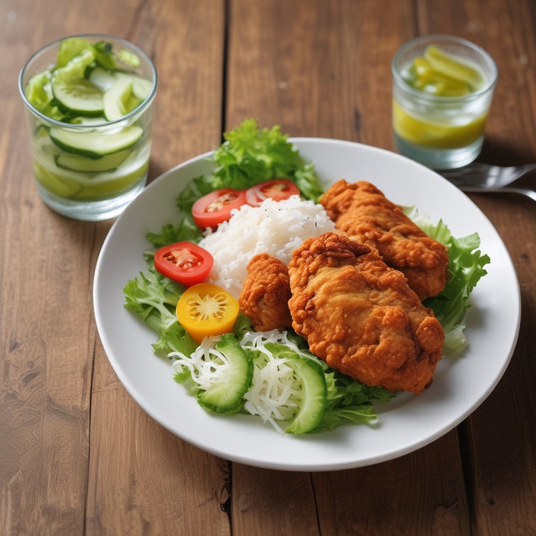 Frango Frito Crocante com Acompanhamento de Arroz e Salada