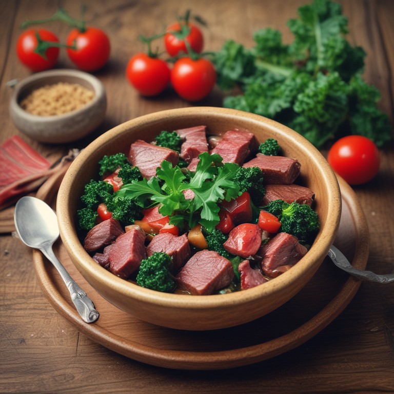 Uma deliciosa receita de carne de vaca cozida com couves e tomates, perfeita para um almoço nutritivo e saboroso.
