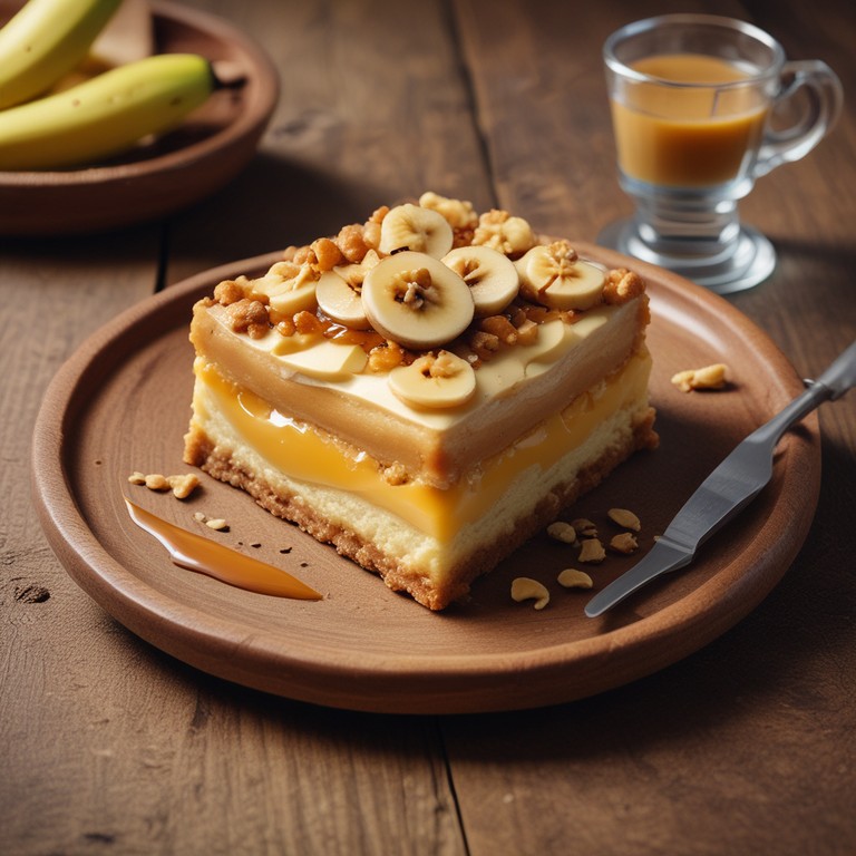 Uma deliciosa torta de banana com doce de leite, típica da sobremesa nicaraguense, perfeita para adoçar o seu dia.
