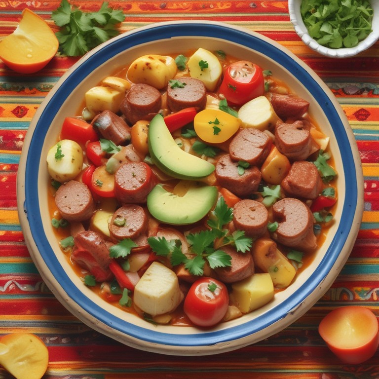Un platillo delicioso y reconfortante que combina salchichas, papas y jitomates, cubierto con queso derretido. Perfecto para una comida rápida y sabrosa.