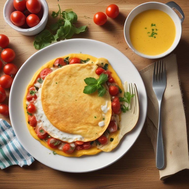 Uma omelete leve e saborosa, perfeita para o café da manhã ou lanche, combinando a suavidade dos ovos com a frescura do tomate e a leveza da farinha de trigo.