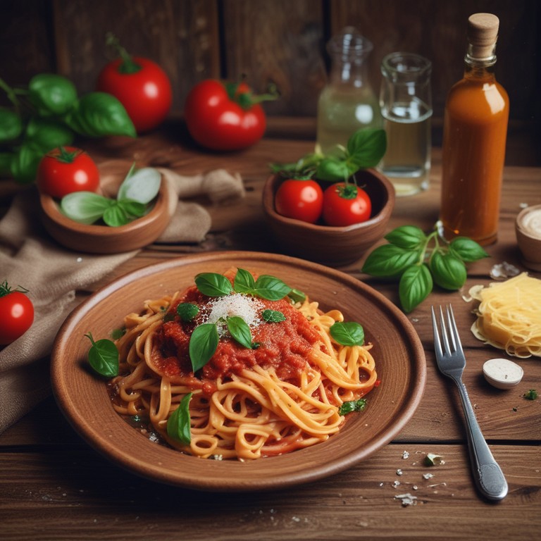 Uma receita clássica de massas italianas com um molho de tomate fresco e manjericão, perfeita para um jantar aconchegante.