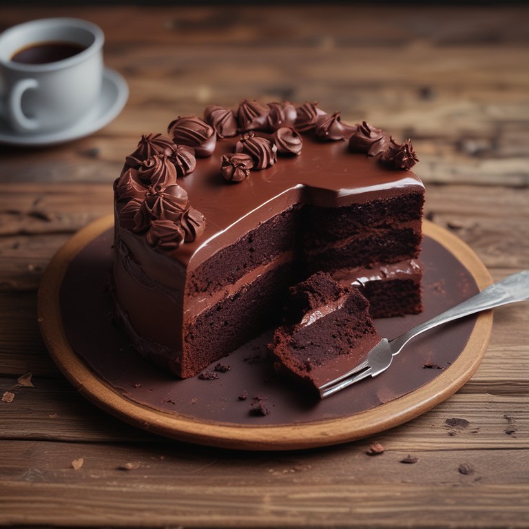 Um bolo de chocolate fofinho e úmido, coberto com uma rica ganache de chocolate, perfeito para qualquer ocasião.