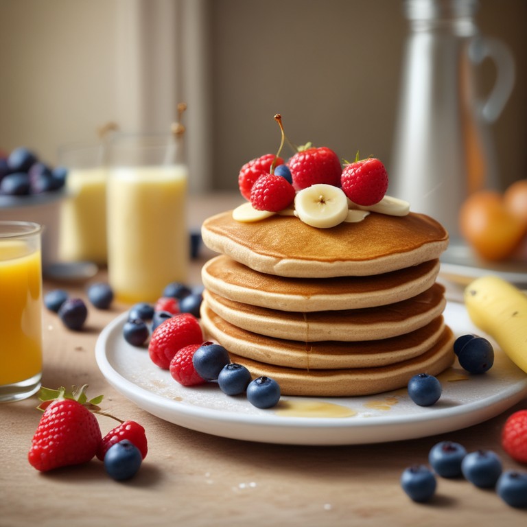 Uma receita saudável e nutritiva de panquecas feitas com farinha de trigo integral e whey protein, perfeitas para um café da manhã energético.