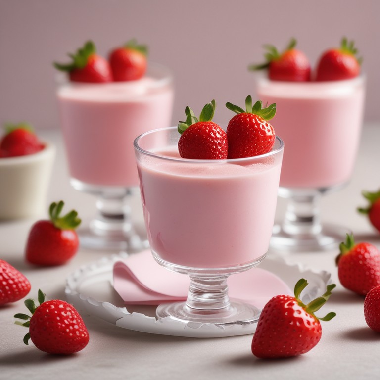 Uma mousse leve e cremosa de morango, perfeita para sobremesas refrescantes.