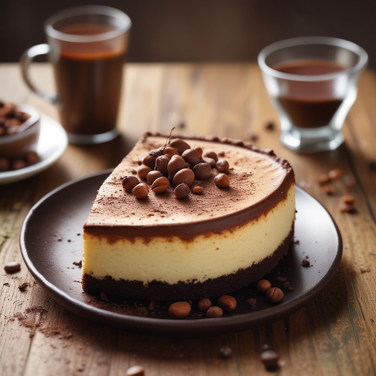 Un flgateau fromage crémeux au café, avec une croûte croustillante au chocolat, parfait pour les amateurs de desserts riches et savoureux.