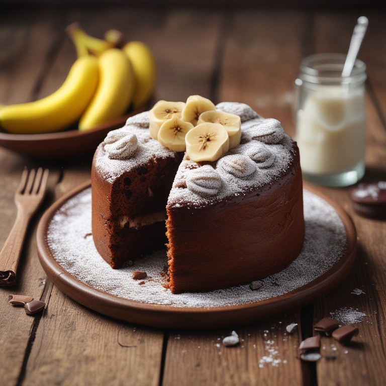 Um bolo delicioso e úmido de banana com chocolate, perfeito para o lanche ou sobremesa.