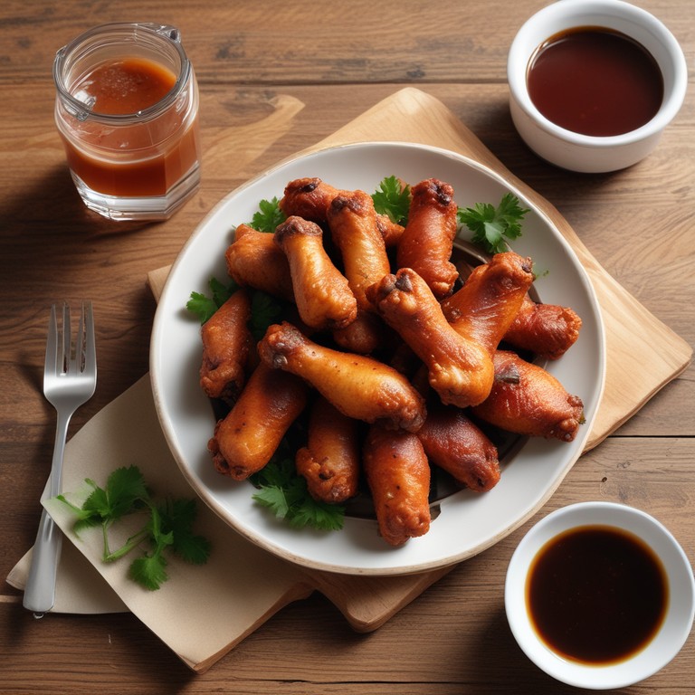 Asinhas de frango crocantes e suculentas, marinadas com temperos e cobertas com molho barbecue, perfeitas para um lanche ou refeição.