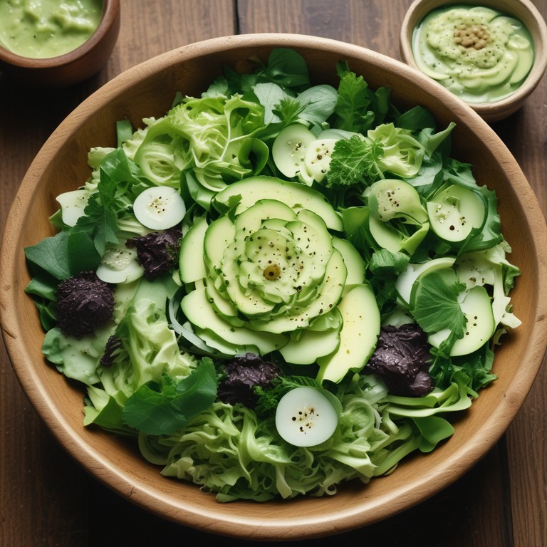 Ensalada Verde Fresca con Salsa de Pepino y Aguacate