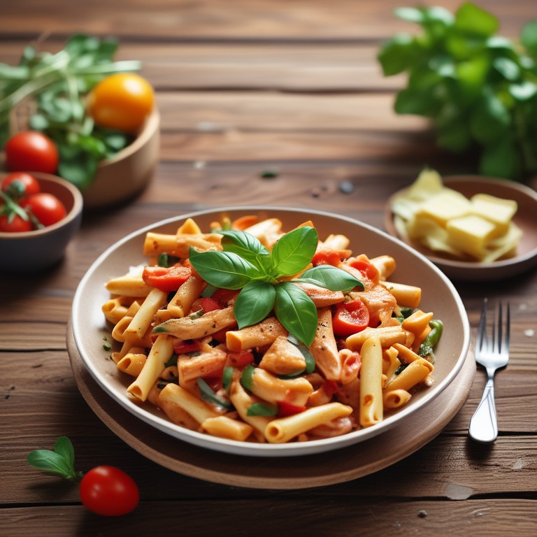 Penne met Kip en Groenten in een Romige Tomatensaus