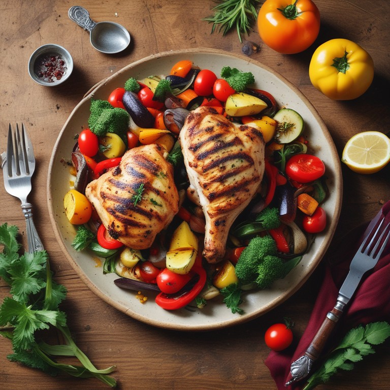 Cena Mediterránea de Pollo a la Parrilla con Verduras Asadas