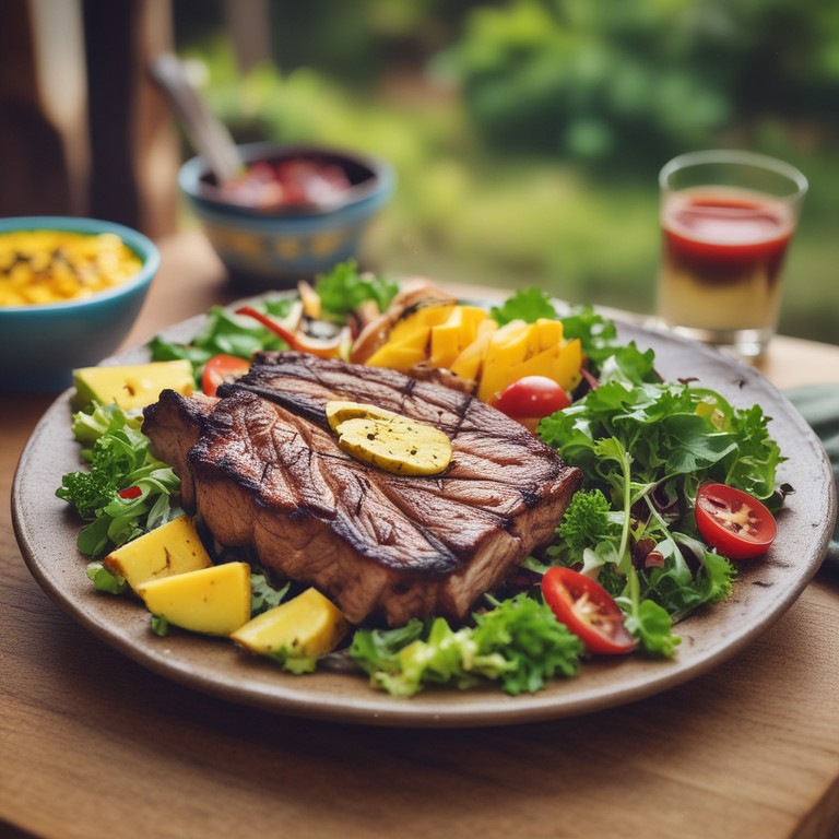 Asado Brasileño Gourmet con Farofa y Ensalada de Mango