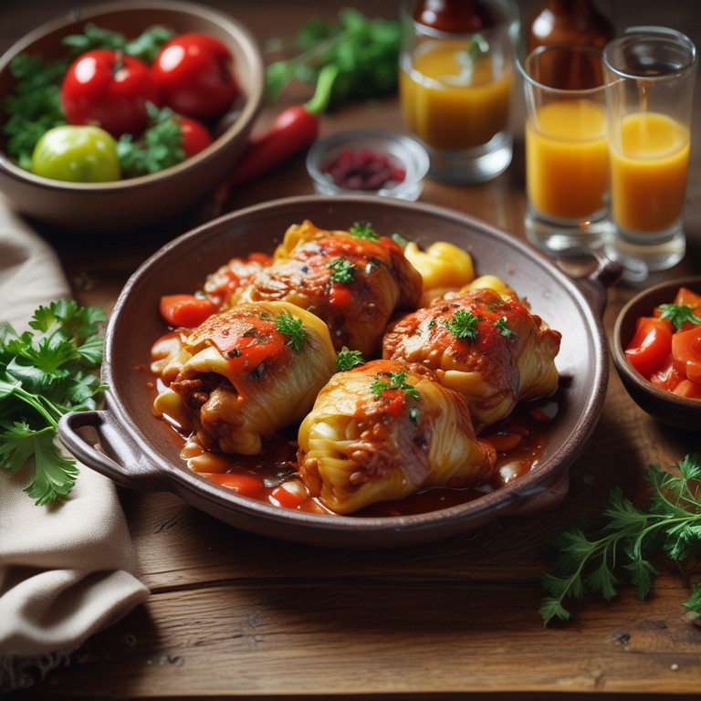 Un plat savoureux de chou farci, rempli de viande hachée et de riz, assaisonné d'épices, parfait pour un repas réconfortant.