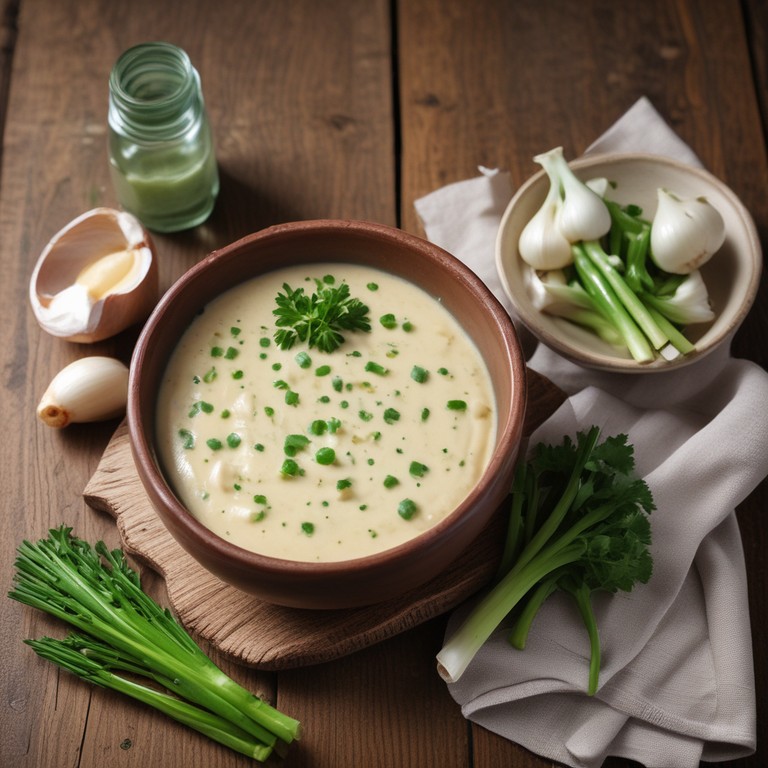 Um delicioso creme de cebola com alho e cebolinha, perfeito para acompanhar pratos ou como base para molhos.