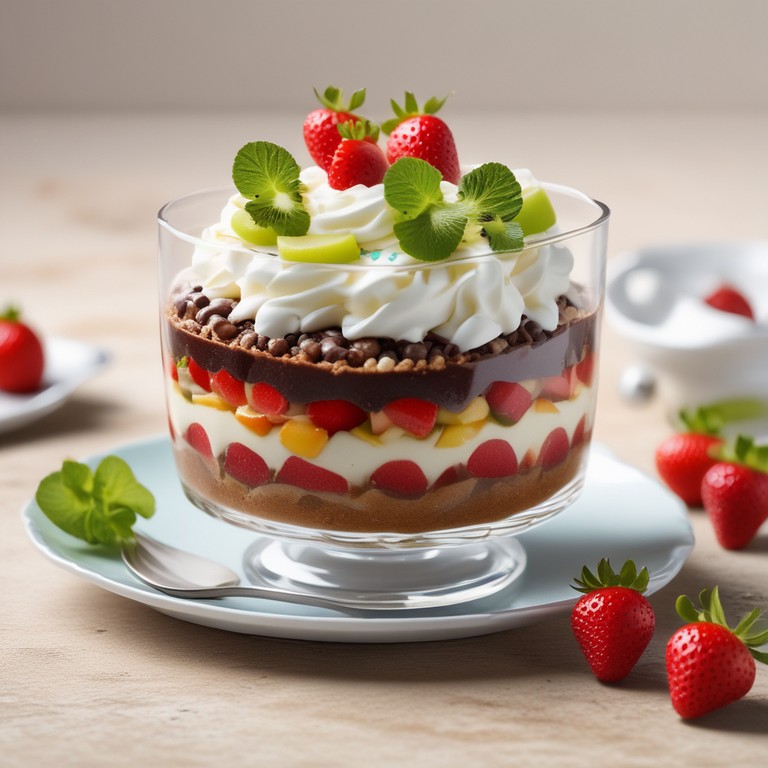 Este delicioso postre combina la frescura de la gelatina de frutas con el rico sabor del chocolate y la suavidad de la crema batida. Perfecto para cualquier ocasión especial o simplemente para disfrutar en casa.