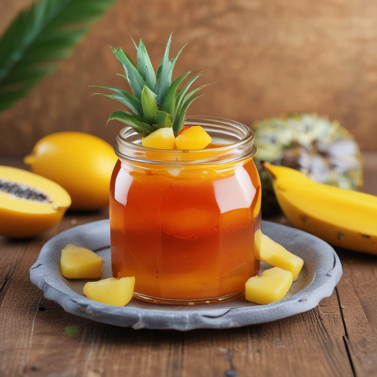 Uma deliciosa geleia feita com mel e frutas tropicais, perfeita para acompanhar pães, torradas ou como recheio de sobremesas.