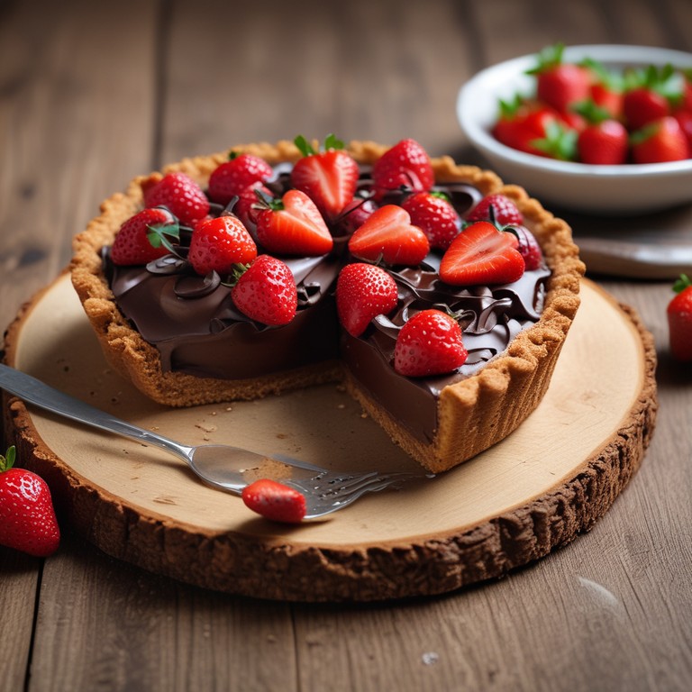 Uma deliciosa torta de chocolate e morango com uma base crocante de biscoito maisena, perfeita para qualquer ocasião especial.