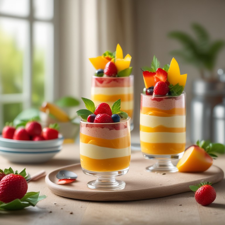Uma deliciosa mousse tropical feita com leite condensado e leite em pó, combinando o sabor doce do morango, a suavidade da manga e o toque azedo do maracujá.
