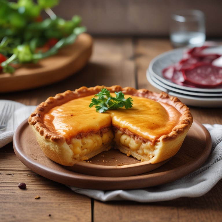 Uma deliciosa torta de calabresa com um recheio cremoso, perfeita para um lanche ou refeição.