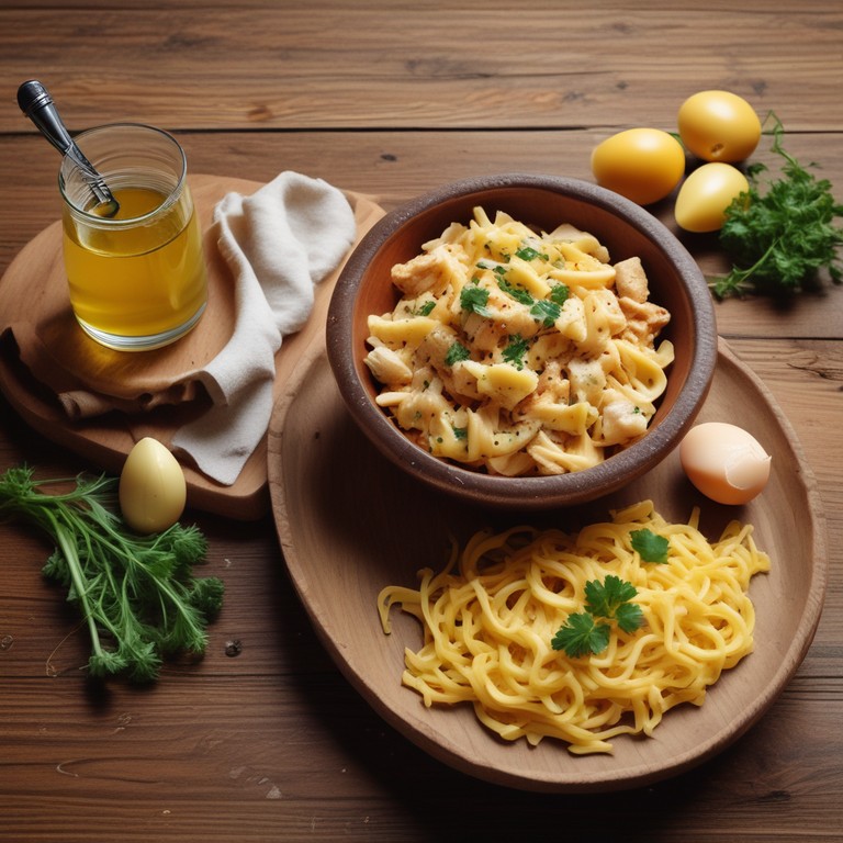 Uma receita simples e saborosa de macarrão com frango desfiado e ovo, perfeita para um almoço rápido e nutritivo.