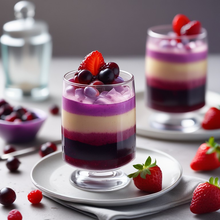 Uma deliciosa e saudável sobremesa que combina gelatina zero de uva e morango com whey protein de chocolate, perfeita para quem busca uma opção leve e nutritiva.