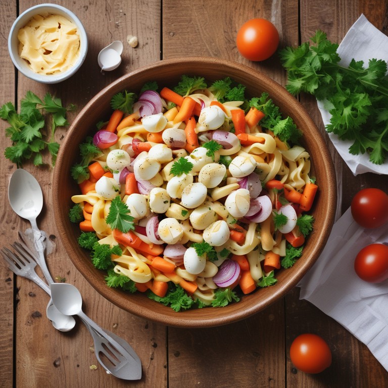 Uma salada leve e refrescante, perfeita para um lanche rápido ou acompanhamento. Com macarrão, ovos cozidos, cenouras e maionese, é uma opção nutritiva e saborosa que pode ser preparada em poucos minutos.