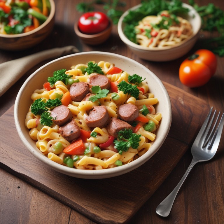 Um prato saboroso e cremoso que combina macarrão com linguiça Toscana e um molho rico de creme de leite e leite de coco, perfeito para um almoço em família.