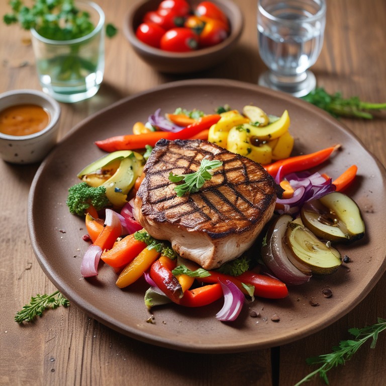 Uma deliciosa receita de filé de sassami grelhado, acompanhado de legumes coloridos e saudáveis, perfeita para uma refeição leve e nutritiva.