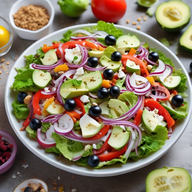 Una ensalada fresca y colorida que combina una variedad de verduras crujientes y saludables, perfecta para acompañar cualquier comida o disfrutar como un plato ligero.