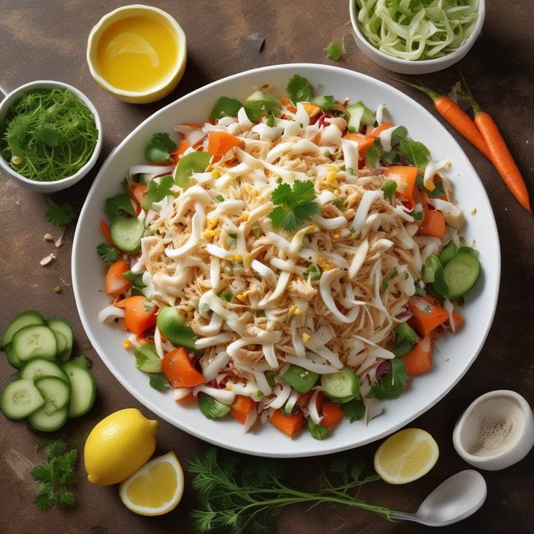 Uma salada leve e nutritiva, perfeita para dias quentes, combinando frango desfiado com iogurte e legumes frescos.