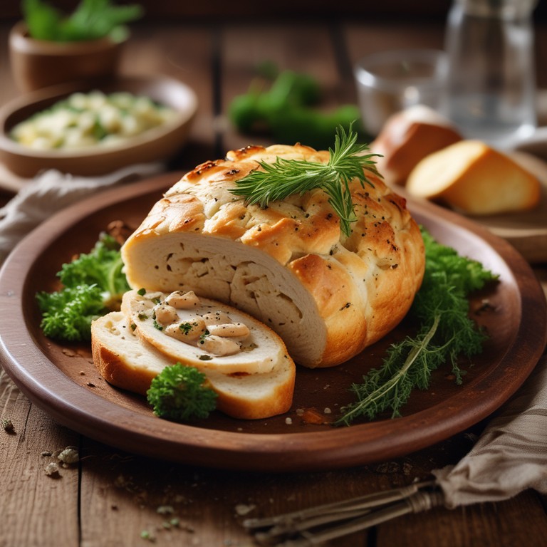 Uma deliciosa receita de frango recheado com purê de batata envolto em um pão caseiro macio. Perfeito para um almoço ou jantar especial!