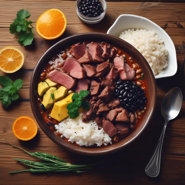 A feijoada é um prato tradicional brasileiro, rico em sabores e perfeito para um almoço em família. Esta receita traz uma combinação de carnes e feijão preto, servida com arroz e acompanhamentos típicos.