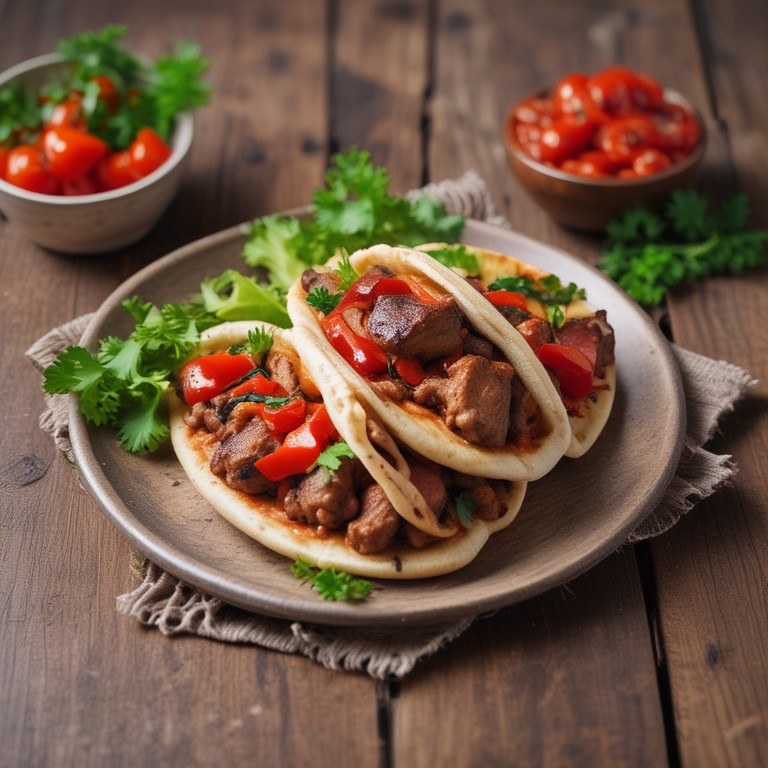 Un kebab savoureux accompagné d'une sauce tomate riche et épicée, parfait pour un repas rapide et délicieux.
