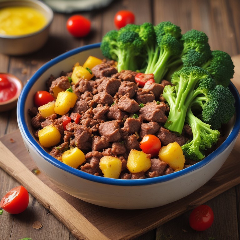 Um prato saboroso e nutritivo, perfeito para uma refeição em família, combinando carne moída com vegetais frescos.
