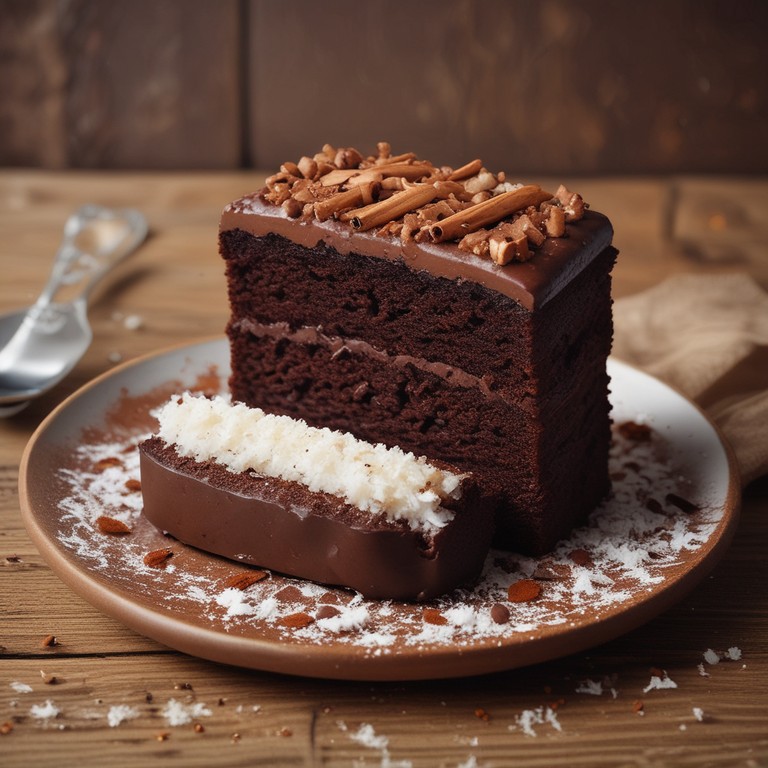 Um bolo delicioso que combina chocolate, coco e canela, perfeito para qualquer ocasião.