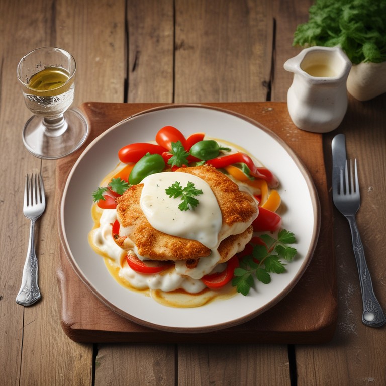 Uma deliciosa variação do clássico filé de frango à parmegiana, agora com um toque cremoso de creme de leite e requeijão, além de pimentões coloridos que trazem frescor e sabor ao prato.