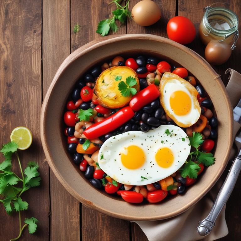 Uma combinação clássica e nutritiva de ovos e feijão, perfeita para um café da manhã ou almoço brasileiro.