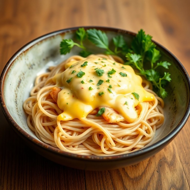 Macarrão de Arroz com Queijo e Ovo Cremoso