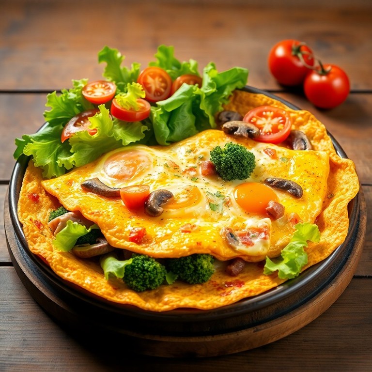 Tortilla de Huevos con Jamón, Queso, Champiñones y Brócoli
