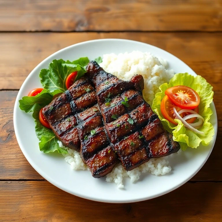 Uma combinação perfeita de carne grelhada, arroz soltinho e uma refrescante salada de alface.