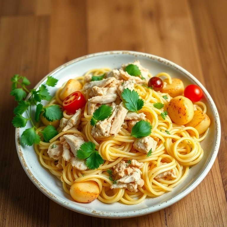 Uma receita simples e deliciosa que une macarrão, frango e batata em um prato reconfortante.