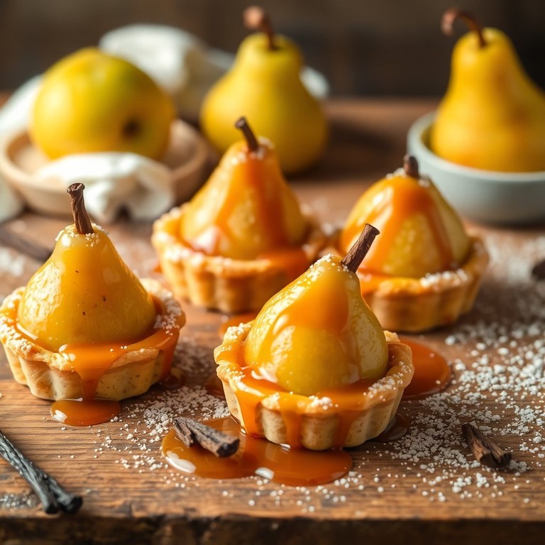 Ces tartelettes allient la douceur des poires à la vanille et le caramel onctueux, créant un dessert irrésistible et élégant.