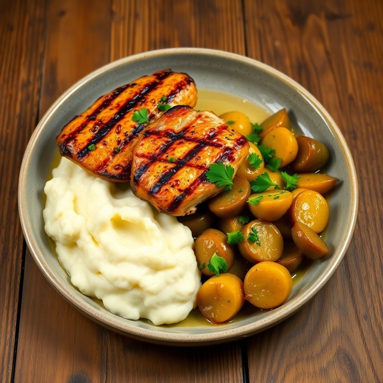 Sobrecoxa Grelhada com Purê de Batata e Chuchu Refogado