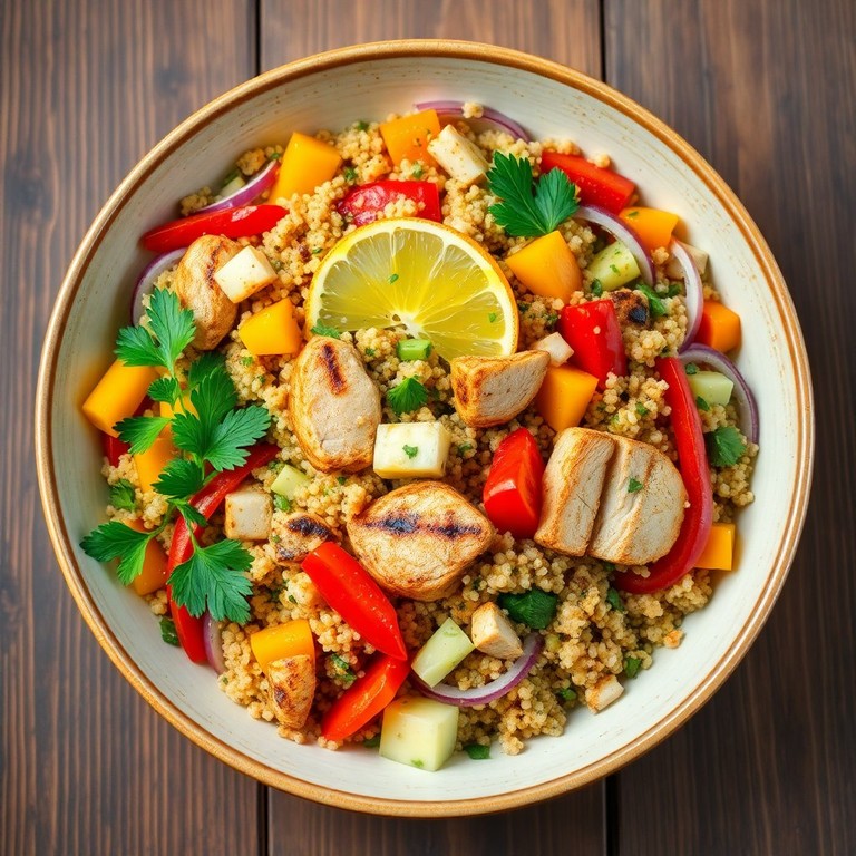 Uma salada nutritiva e cheia de proteínas, perfeita para refrescar-se em dias quentes. A combinação de quinoa e carne magra torna este prato uma opção saudável e saborosa.
