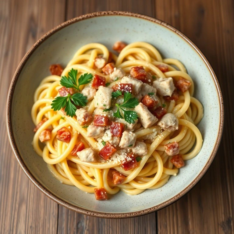 Uma combinação irresistível de sabores e cremosidade, este macarrão cremoso com atum e bacon é perfeito para um jantar rápido e saboroso. O bacon crocante e o atum se misturam em um molho cremoso que envolve cada pedaço de macarrão, tornando esta receita uma verdadeira delícia.