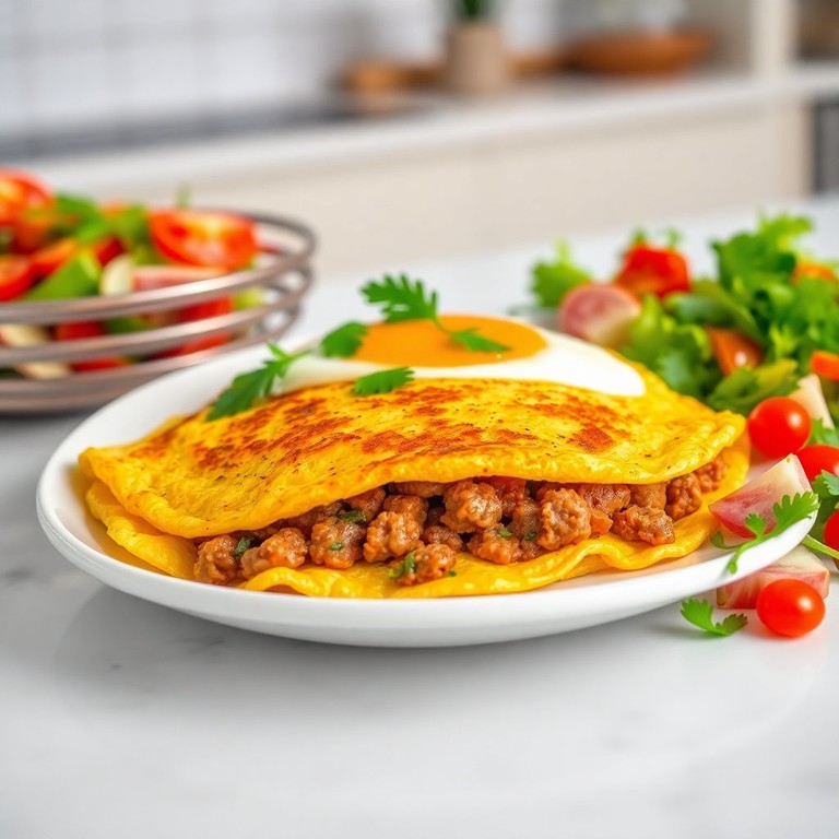 Uma omelete simples e saborosa, ideal para qualquer refeição, combinando a riqueza dos ovos com a textura da mortadela e a leveza da farinha de trigo.