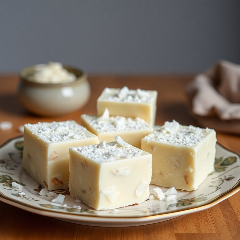 Um doce cremoso que derrete na boca, feito com chocolate branco, leite em pó e coco, perfeito para qualquer ocasião.